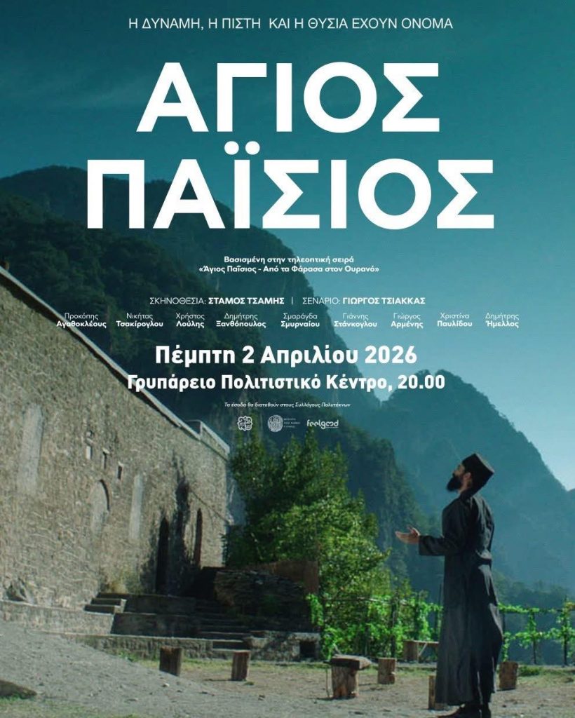 Μια ιδιαίτερη κινηματογραφική προβολή με έντονο πνευματικό και πολιτιστικό χαρακτήρα θα φιλοξενηθεί στη Μύκονο την Πέμπτη 2 Απριλίου 2026. Στις 20.00, στο Γρυπάρειο Πολιτιστικό Κέντρο, θα προβληθεί η ταινία «Άγιος Παΐσιος», η οποία είναι βασισμένη στην τηλεοπτική σειρά «Άγιος Παΐσιος, Από τα Φάρασα στον Ουρανό».