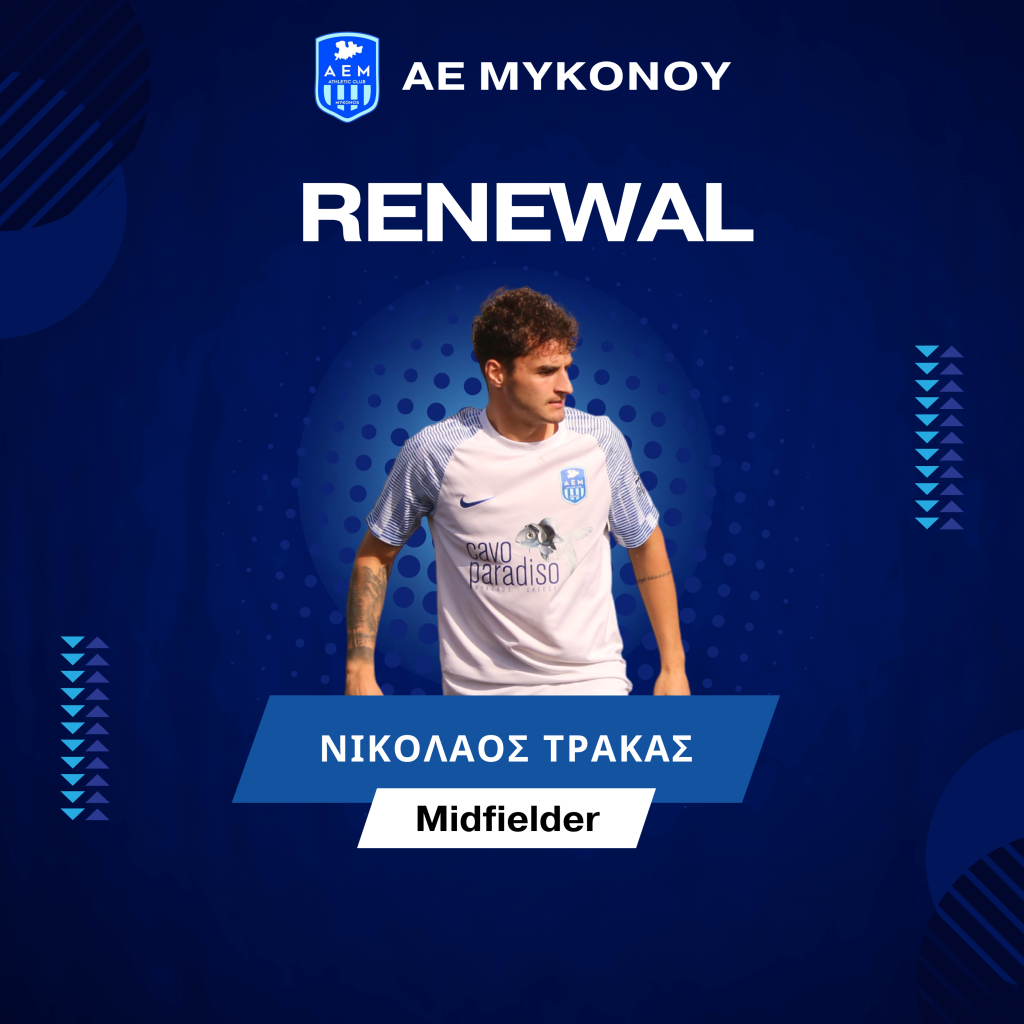 Η ΑΕ Μυκόνου ανακοίνωσε ακόμα μια ανανέωση, και πιο συγκεκριμένα αυτή του Νίκου Τράκα, με το νεαρό ποδοσφαιριστή να παραμένει για 3η συνεχόμενη χρονιά στο νησί των ανέμων.