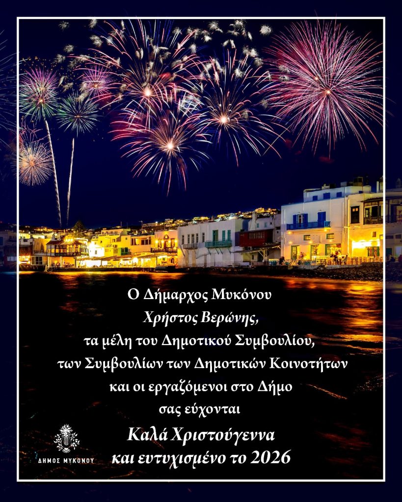 Ο Δήμος Μυκόνου με δημοσίευση στη πολιτιστική σελίδα του στα Μέσα Κοινωνικής Δικτύωσης εύχεται Χρόνια πολλά και ευτυχισμένο το 2026!