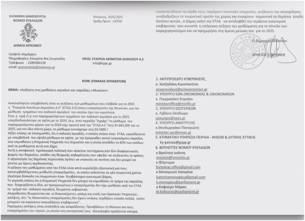 Η Μύκονος δεν αντέχει άλλες αυθαιρεσίες εις βάρος της βιωσιμότητας των επαγγελματιών και της τοπικής κοινωνίας.