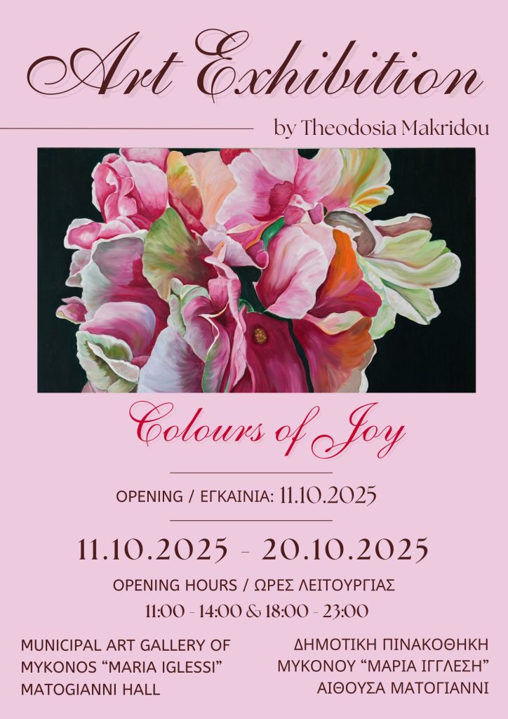 Στη συλλογή “Colours of Joy”, το χρώμα δεν αποτελεί απλώς αισθητική επιλογή, αλλά μια μυστική γλώσσα συναισθημάτων· μια συνομιλία με την ψυχή, τη μνήμη και τα όνειρα.