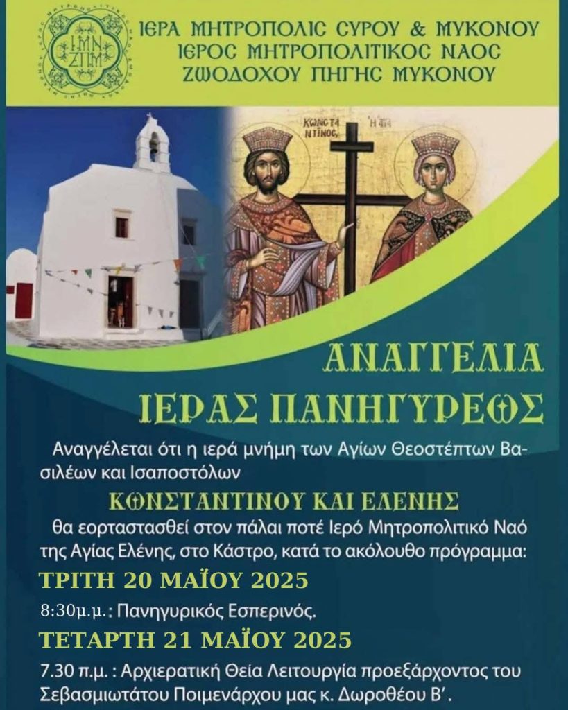 Δείτε το αναλυτικό πρόγραμμα για τον Πανηγυρικό Εσπερινό και την Αρχιερατική Θεία Λειτουργία η οποία θα είναι προεξάρχοντος του Σεβασμιότατου Ποιμενάρχου μας κ. Δωρόθεου Β’.