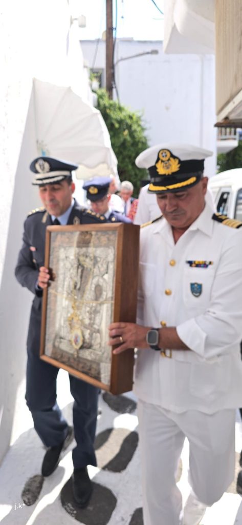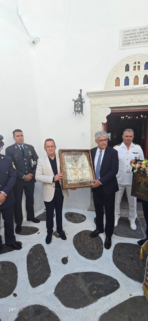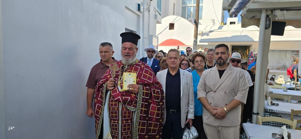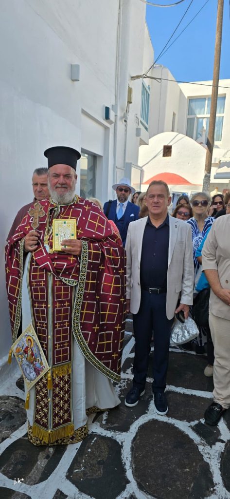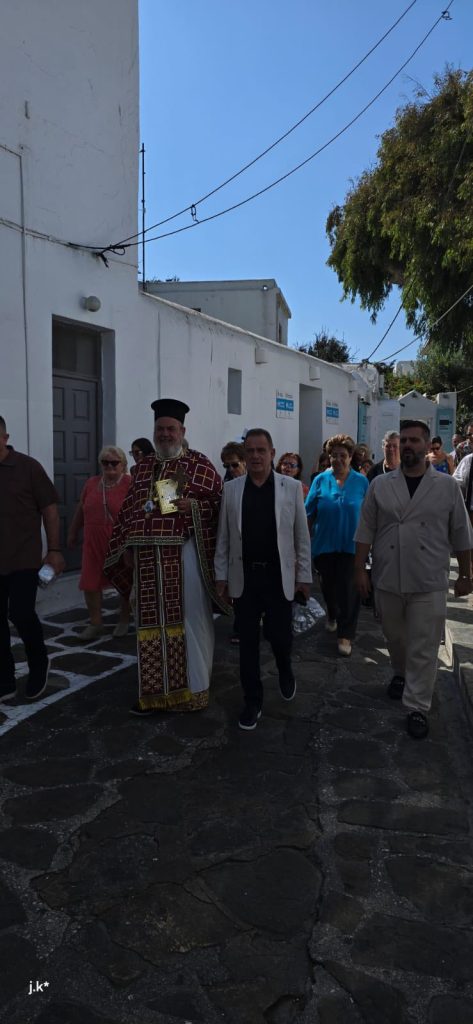 Πραγματοποιήθηκε η Λιτάνευση στον Ιερό Μητροπολιτικό Ναό Μεγάλης Παναγίας, με την συνευχητική παρουσία του Δημάρχου κ. Χρήστου Βερώνη, του κ. Στέλιου Μπρίγγου, Αντιπεριφερειάρχη Πολιτισμού, του κ. Ανδρέα Φιορεντίνου Γ. Γραμματέα του ΕΟΤ, Δημοτικών Συμβούλων, του Διοικητή της Αεροπορίας, του Διοικητή της Αστυνομίας, του Λιμενάρχη Μυκόνου και πλήθους πιστών, ντόπιων και παραθεριστών, της εικόνας της Πηγαδιώτισσας, που βρέθηκε στο πηγάδι της Αλευκάνδρας, εξ ου και η ονομασία της και προς τιμήν της Παναγίας χτίστηκε ο Ναός το 1616 από την οικογένεια των Γρυπάρη.