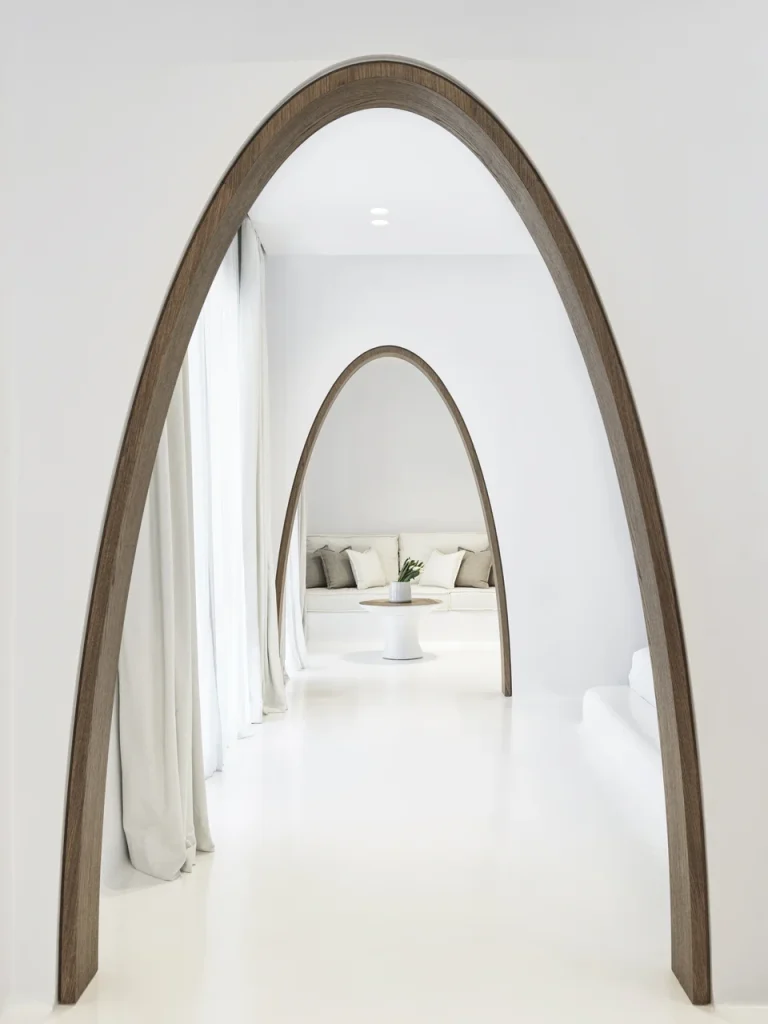 Καμάρες πλαισιωμένες με ξύλο σε σουίτα του ξενοδοχείου Mykonos Earth Suites από το αρχιτεκτονικό γραφείο Omniview Design