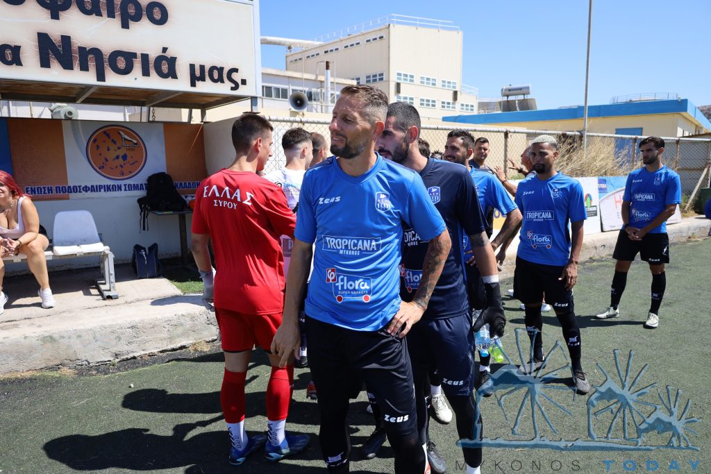 Η Ελλάς Σύρου έδειξε ανά διαστήματα να πρεσάρει τον αντίπαλο ψηλά στο γήπεδο καθώς θέλει να παίξει και φέτος παιχνίδια κατοχής. Από την άλλη πλευρά η Μύκονος σαφώς πιο βελτιωμένη από πέρσι έδειξε πως η χρονιά θα είναι αρκετά καλύτερη και η εικόνα της θα είναι αυτή των προηγούμενων ετών.