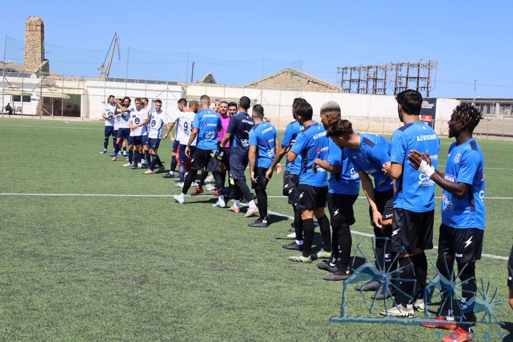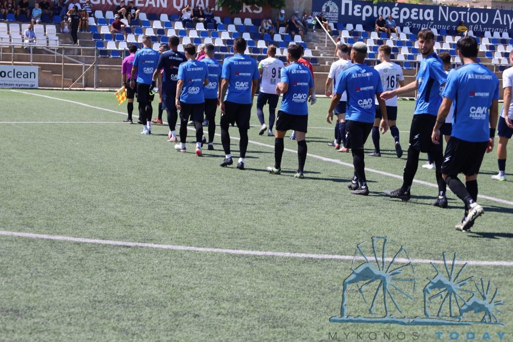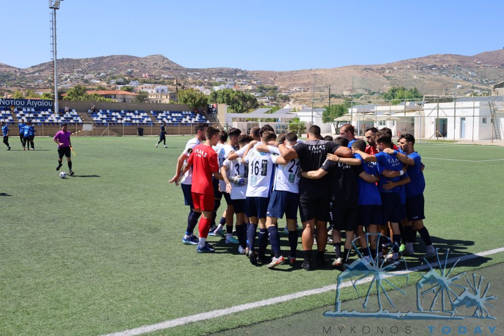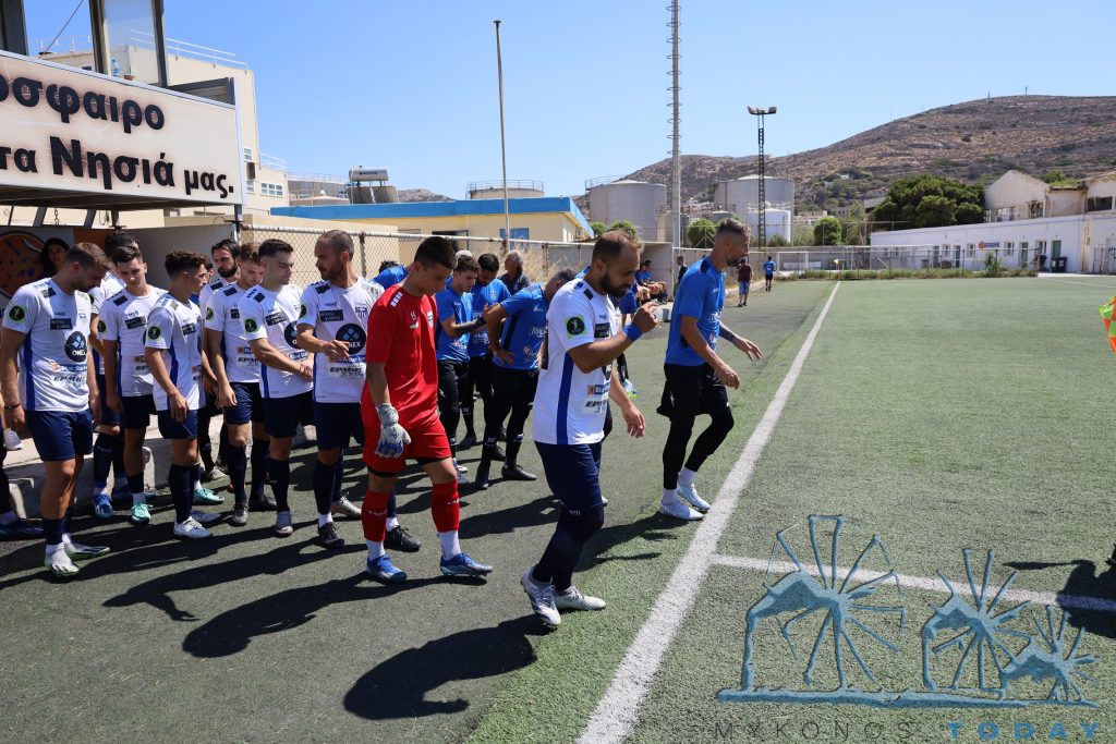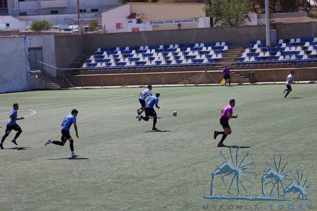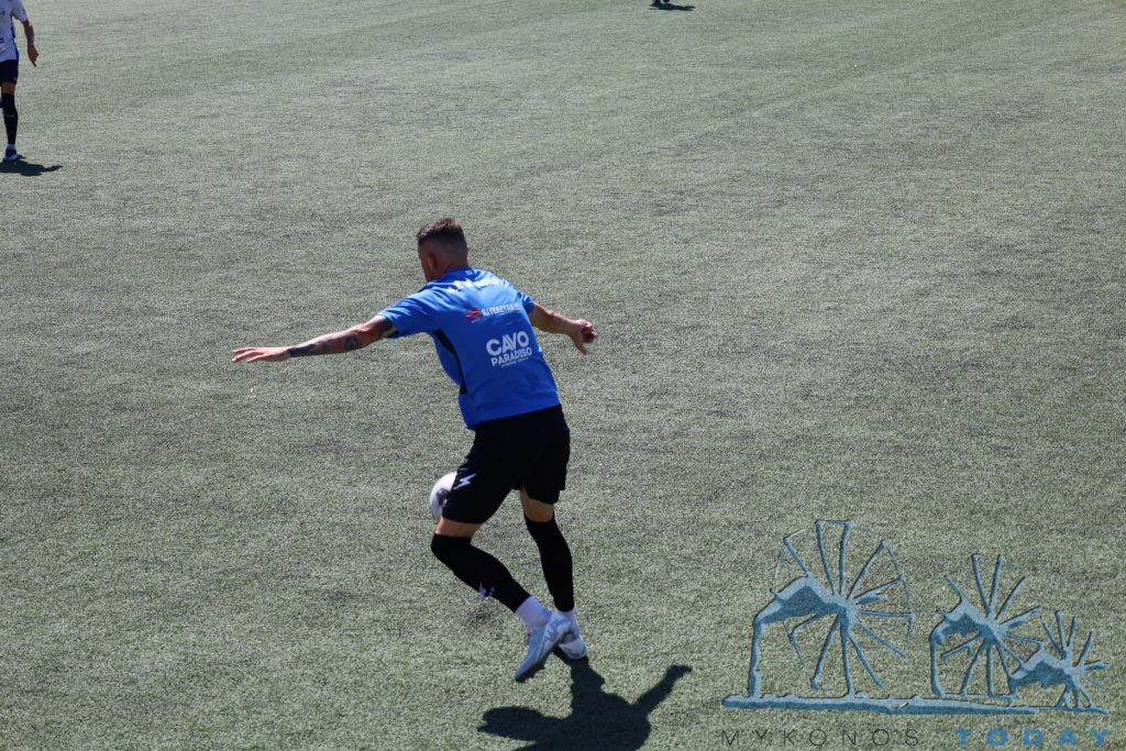 Από την άλλη πλευρά η καλύτερη στιγμή της ομάδας της Μυκόνου στο δεύτερο ημίχρονο το δοκάρι σε σουτ από έξω από τη μεγάλη περιοχή.