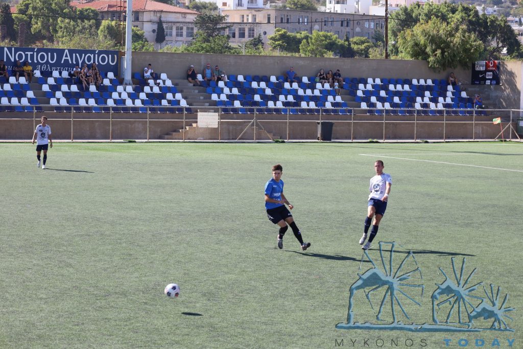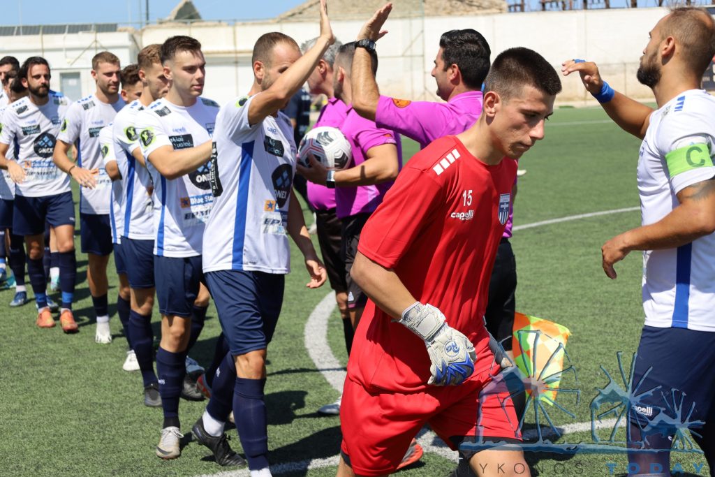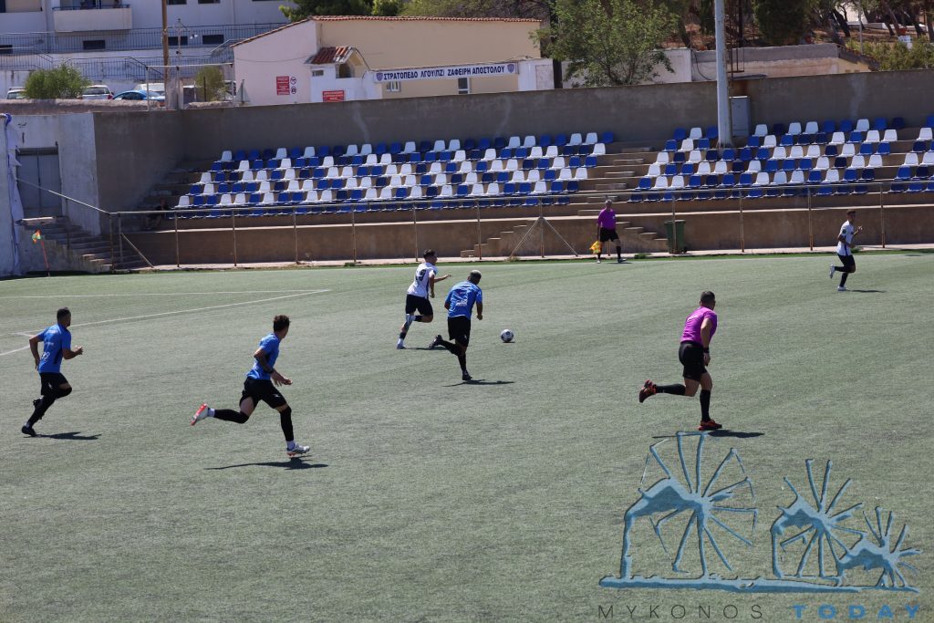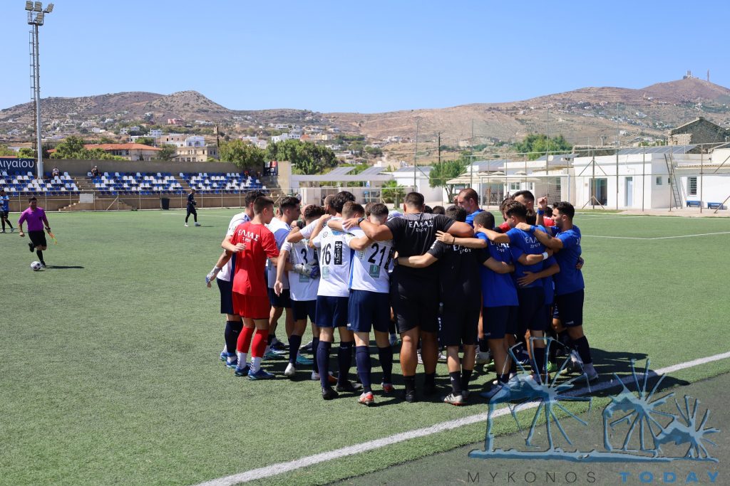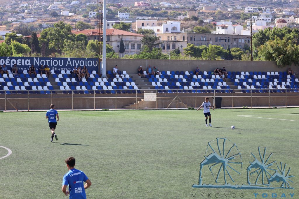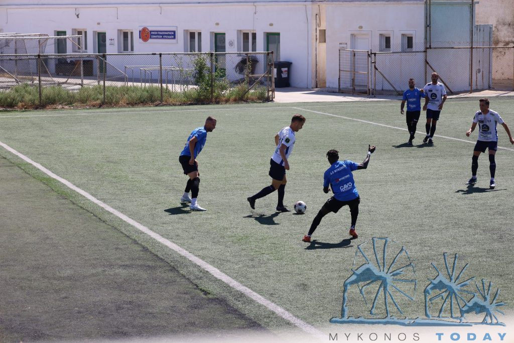 Από την άλλη πλευρά η καλύτερη στιγμή της ομάδας της Μυκόνου στο δεύτερο ημίχρονο το δοκάρι σε σουτ από έξω από τη μεγάλη περιοχή.