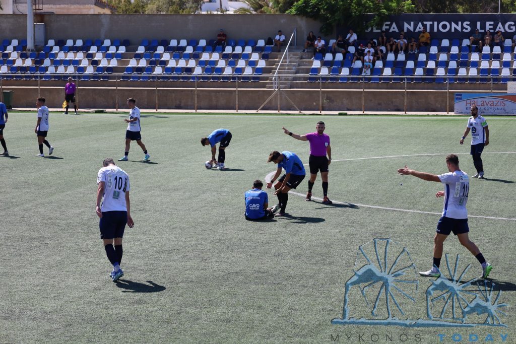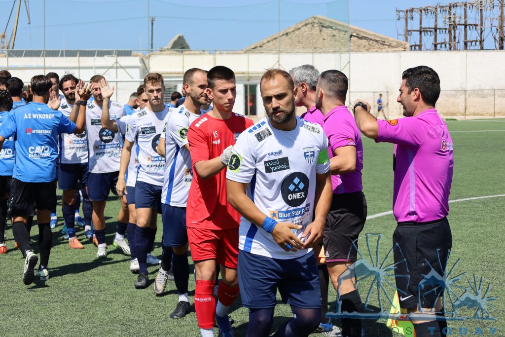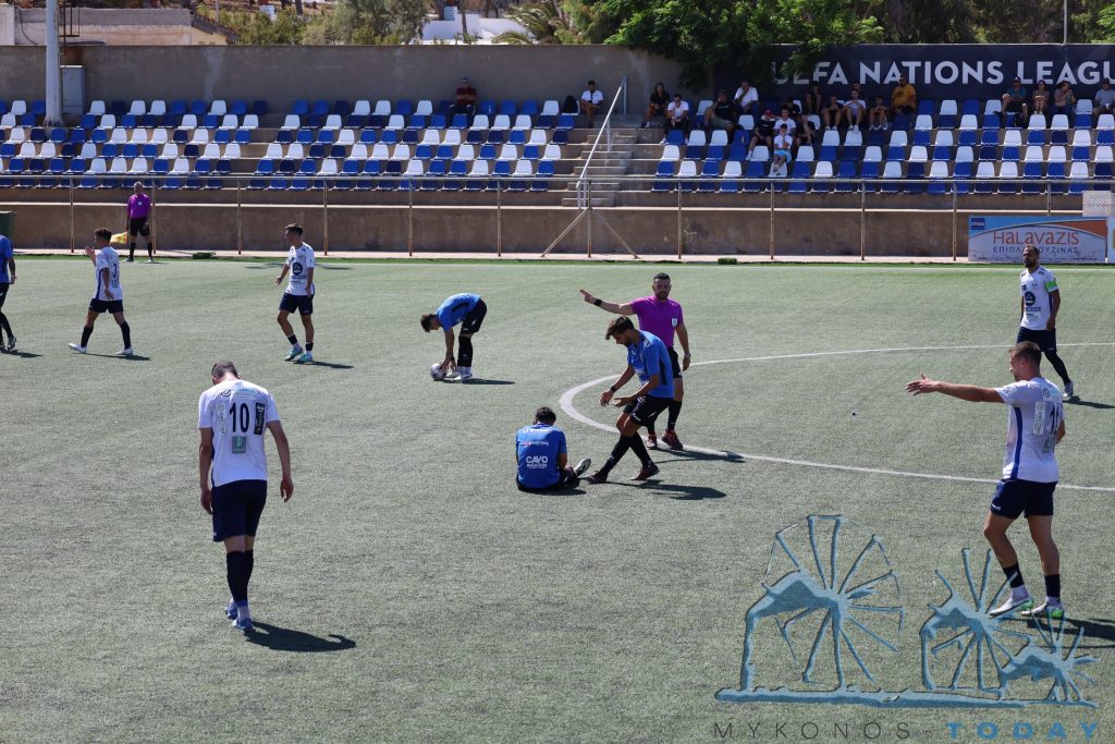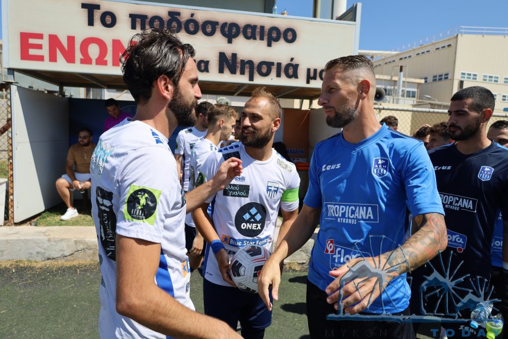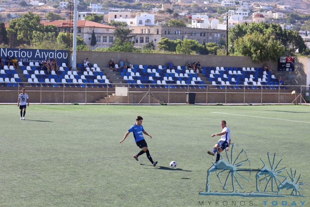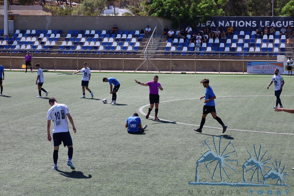 Από την άλλη πλευρά η καλύτερη στιγμή της ομάδας της Μυκόνου στο δεύτερο ημίχρονο το δοκάρι σε σουτ από έξω από τη μεγάλη περιοχή.