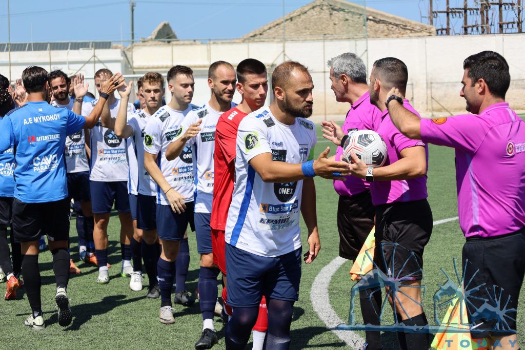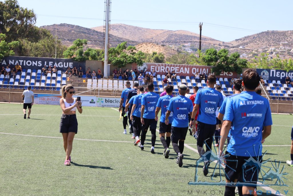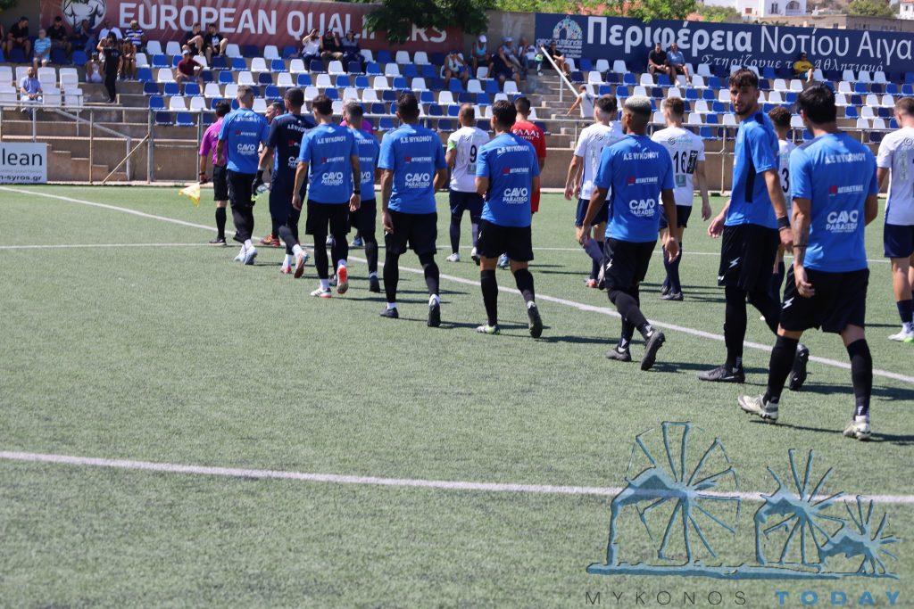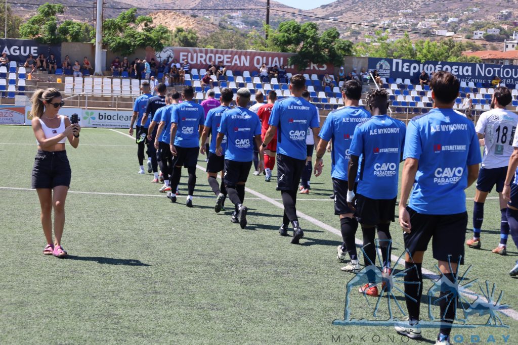 Η Μύκονος προηγήθηκε με 0-2 στο ματς χάρη στα τέρματα που σημείωσαν οι: Σαμπανίδης (27’) και Πινέιρο (41’) .