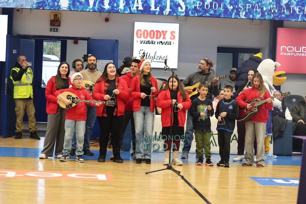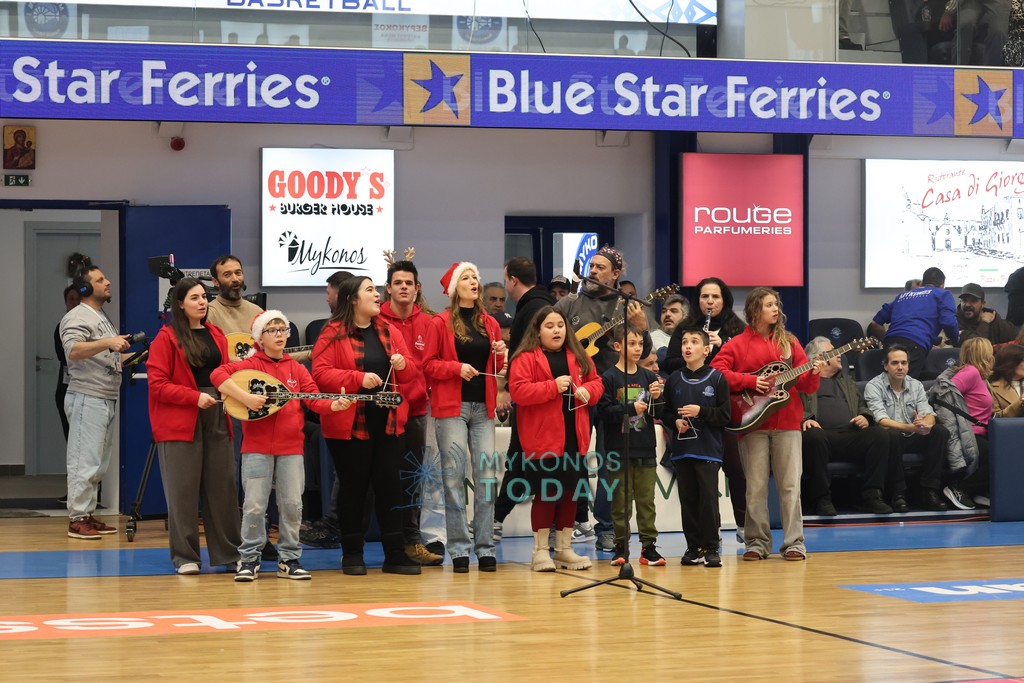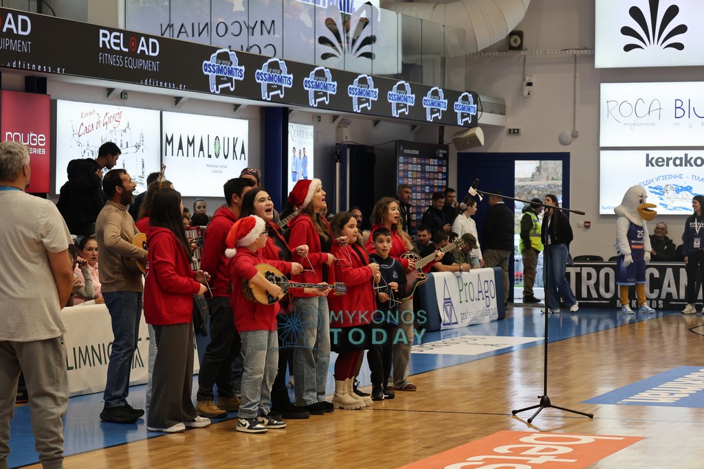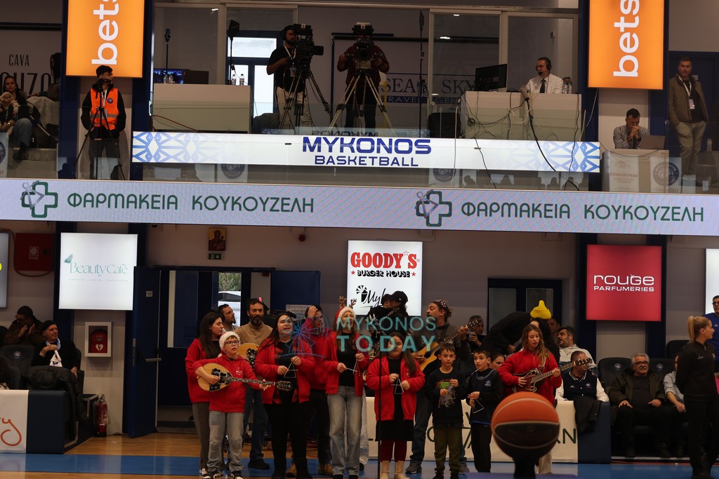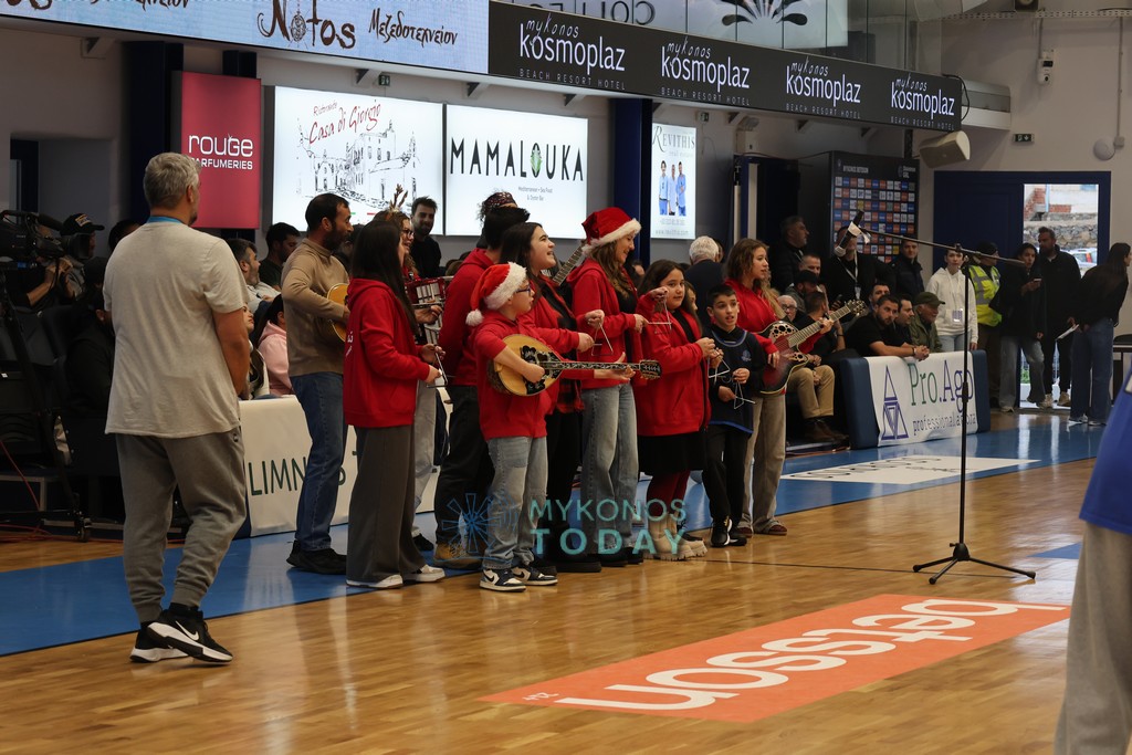 Πριν την έναρξη του μεγάλου αγώνα της Μύκονος Betsson με τον ΠΑΟΚ, ο Χορευτικός Όμιλος “Μαντώ” έπαιξε τα πρωτοχρονιάτικα Κάλαντα.