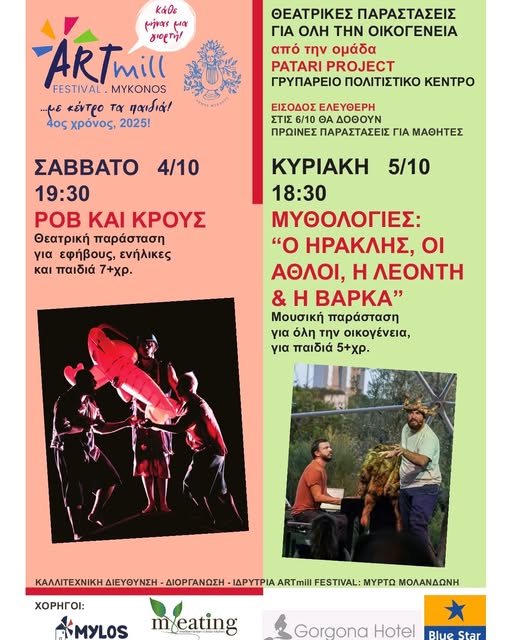 Το ARTMill Festival Μύκονος μας φέρνει το αγαπημένο PATARI PROJECT με θεατρικές και μουσικές ιστορίες που θα μας ταξιδέψουν.