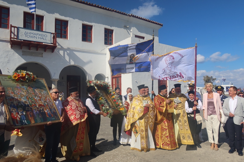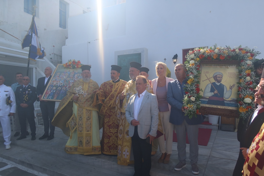 Παρέστησαν η Βουλευτής Κυκλάδων κα Αικατ. Μονογυιού, ο Δήμαρχος Μυκόνου, διατελέσαντες Δήμαρχοι, Αντιδήμαρχοι και Δημοτικοί Σύμβουλοι, ο Διοικητής της Αεροπορικής Βάσης Μυκόνου, ο Υπολιμενάρχης, Πρόεδροι και μέλη τοπικών Συλλόγων και Φορέων, και μέγα πλήθος Μυκονίων πιστών.