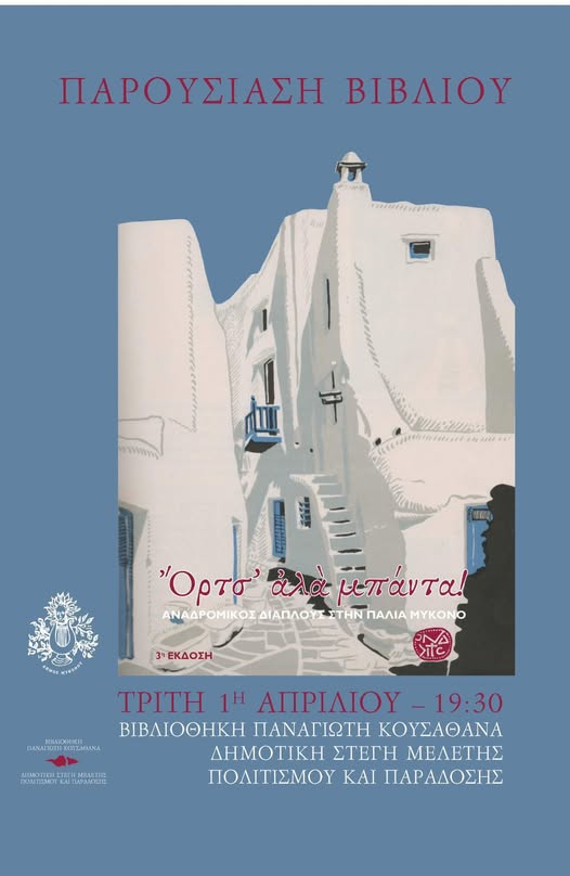 «ΚΑΛΩΣ ΝΑ ΑΝΤΑΜΩΣΟΜΕ ΣΤΟ ΔΗΜΟΤΙΚΟ ΙΔΡΥΜΑ ΤΗΣ ΒΙΒΛΙΟΘΗΚΗΣ ΠΑΝΑΓΙΩΤΗ ΚΟΥΣΑΘΑΝΑ ΤΗΝ 1η ΑΠΡΙΛΙΟΥ, ΗΜΕΡΑ ΤΡΙΤΗ ΣΤΙΣ 19.30΄, ΓΙΑ ΝΑ ΓΙΟΡΤΆΣΟΜΕ ΜΑΖΙ ΤΗΝ ΤΡΙΤΗ ΕΚΔΟΣΗ ΤΟΥ ΑΓΑΠΗΜΕΝΟΥ ΣΑΣ ΒΙΒΛΙΟΥ ΟΡΤΣ’ ΑΛΑ ΜΠΑΝΤΑ!