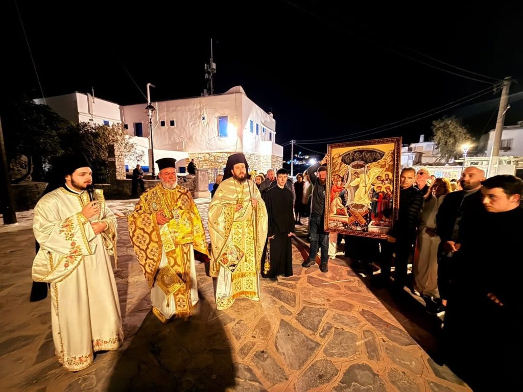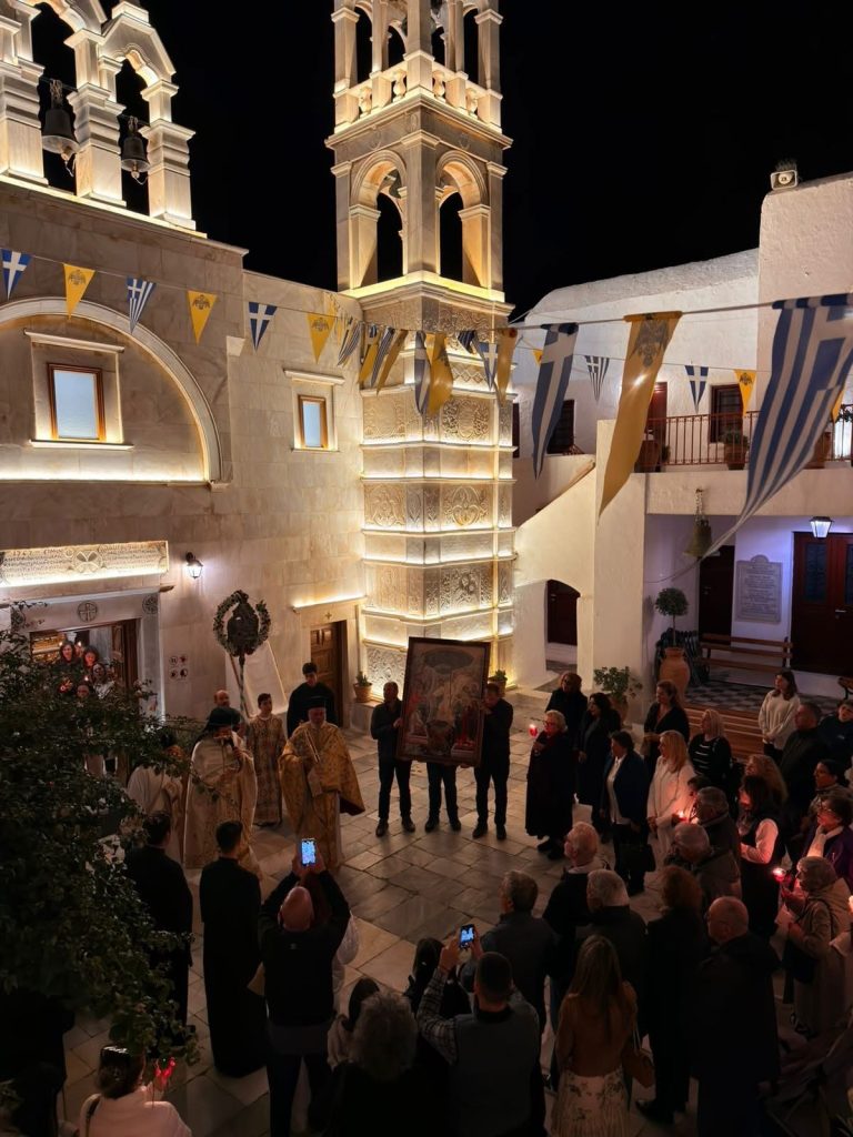 Ξεχώρισε και η παρουσία τοπικών εθίμων, όπως το μοιρολόι της Παναγιάς από γυναίκες του νησιού, που ακούστηκε και φέτος, κρατώντας μια πρακτική που συνεχίζεται κάθε χρόνο.