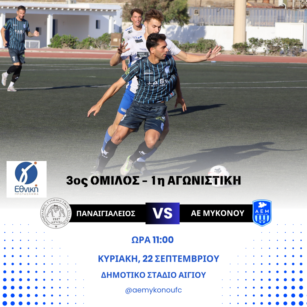 Η ΑΕ Μυκόνου ξεκινάει την Κυριακή 22 Σεπτεμβρίου την φετινή της πορεία στη Γ’ Εθνική Κατηγορία.