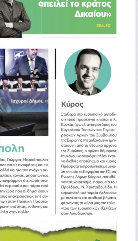 Συγκεκριμένα αναφέρει πως ο πρώην Δήμαρχος Μυκόνου, με αυξανόμενη εμπιστοσύνη από τα θεσμικά όργανα της Ευρώπης καταγράφει έντονο διεθνές αποτύπωμα και κύρος.