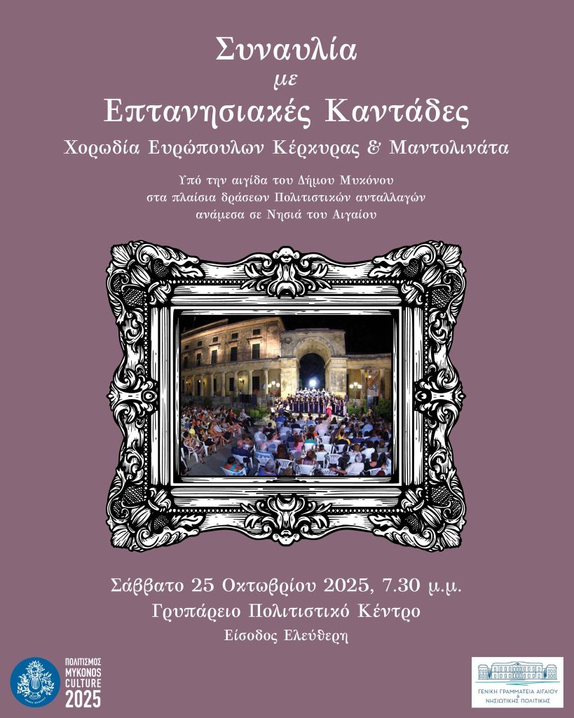 Υπό την αιγίδα του Δήμου Μυκόνου, στο πλαίσιο δράσεων πολιτιστικών ανταλλαγών ανάμεσα σε νησιά του Αιγαίου.