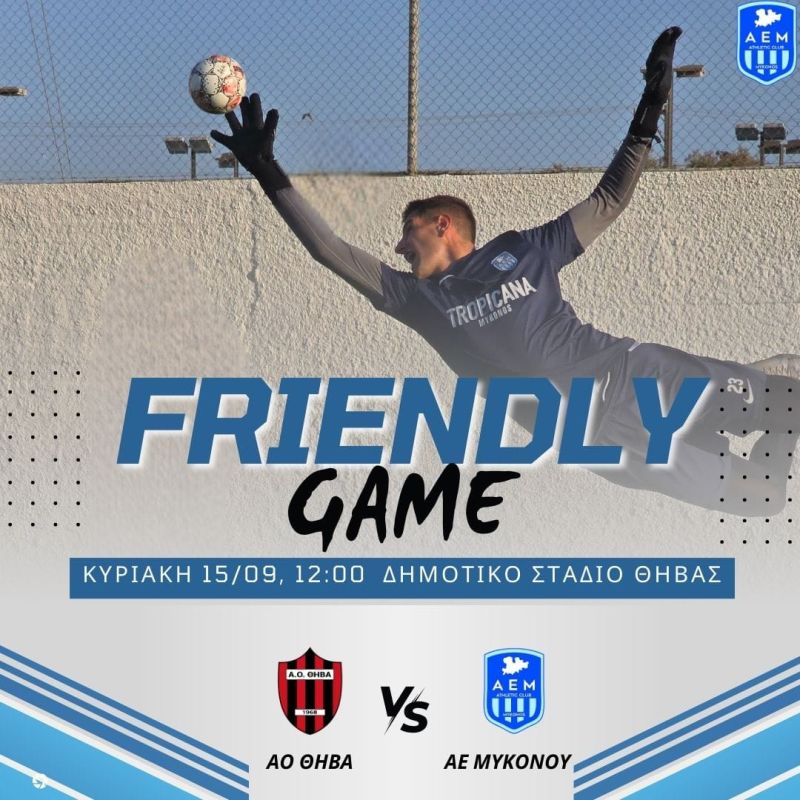 Το τελευταίο φιλικό προετοιμασίας θα παίξει η ΑΕ Μυκόνου, την Κυριακή 15/09 στις 12:00 απέναντι στον Α.Ο. Θήβα.