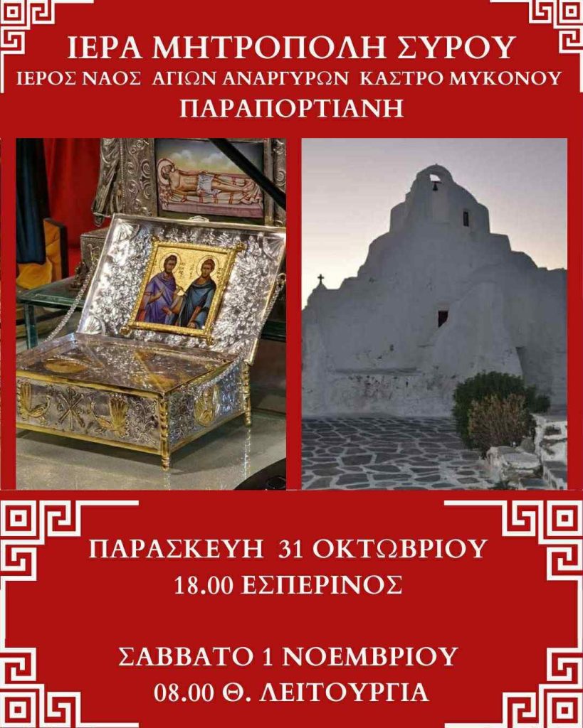 ΕΚΚΛΗΣΙΑΜΥΚΟΝΟΣ Το πρόγραμμα εορτή Αγίων Αναργύρων στην Παραπορτιανή By nickpapoutsas October 30, 2025 Ισχυρή εκκίνηση για τον τουρισμό – Πάνω από 1 δισ. ευρώ τα έσοδα στο πρώτο δίμηνο Ελληνικός τουρισμός: Οι τρεις καθοριστικοί παράγοντες για το 2026 – Στο 21% η συνολική συνεισφορά στο ΑΕΠ πέρυσι Τι αλλάζει για τις Κυκλάδες με τον νέο εκλογικό νόμο – Tι θα ψηφίζουν οι πολίτες Μονάδα απορριμμάτων Κυκλάδων: Σε εξέλιξη ο διαγωνισμός των 195 εκατ. ευρώ Ηχηρή παρέμβαση Ντίνας Σαμψούνη: «Η Μύκονος χωρίς προϋπολογισμό, η δημοτική Αρχή χωρίς απαντήσεις» Το ΕΠΑΛ Μυκόνου στον διαγωνισμό Εικονικής Επιχείρησης με το SphinxTrails ΠροηγούμενοΜυκονιάτικη Βεγγέρα: Πανηγύρι στη Μύκονο – με το καλαθάκι σου, όπως παλιά!ΕπόμενοARTMill Festival Μύκονος: Παράσταση σωματικού κουκλοθεάτρου TagsΕΚΚΛΗΣΙΑΜΥΚΟΝΟΣ ΔΕΙΤΕ ΕΠΙΣΗΣ Φλώριος Ασημομύτης: Η ένταση στη Μέση Ανατολή στρέφει το... ✒️ Άρθρο γνώμης του επιχειρηματία Φλώριου Ασημομύτη Η νέα περίοδος έντασης που διαμορφώνεται στη Μέση Ανατολή και το... Επιμελητήριο Κυκλάδων: Σεμινάρια Τεχνικού Ασφαλείας για εργοδότες Σε εξέλιξη μπαίνει ο προγραμματισμός των σεμιναρίων Τεχνικού Ασφαλείας για εργοδότες, που θα πραγματοποιηθούν στις Κυκλάδες μέσα... Κέντρο Υγείας Μυκόνου: Μια δημόσια δομή που στάθηκε στο... Ο κομβικός ρόλος της προέδρου της Διοικούσας Επιτροπής, Ντίνας Σαμψούνη. Η πορεία του Κέντρου Υγείας δεν υπήρξε εύκολη.... Έκοψε βασιλόπιτα ο Σύλλογος Εκπαιδευτικών στο Γενικό Λύκειο Μυκόνου Σε ζεστό και εορταστικό κλίμα πραγματοποιήθηκε η ευλογία της βασιλόπιτας του Συλλόγου Εκπαιδευτικών στο Γενικό Λύκειο Μυκόνου.... Καιρός: Η πρόγνωση για τη Μύκονο για σήμερα Τετάρτη Η Τετάρτη στη Μύκονο κυλά με καλό καιρό. Η νύχτα και το ξημέρωμα έχουν λίγες νεφώσεις, αλλά...