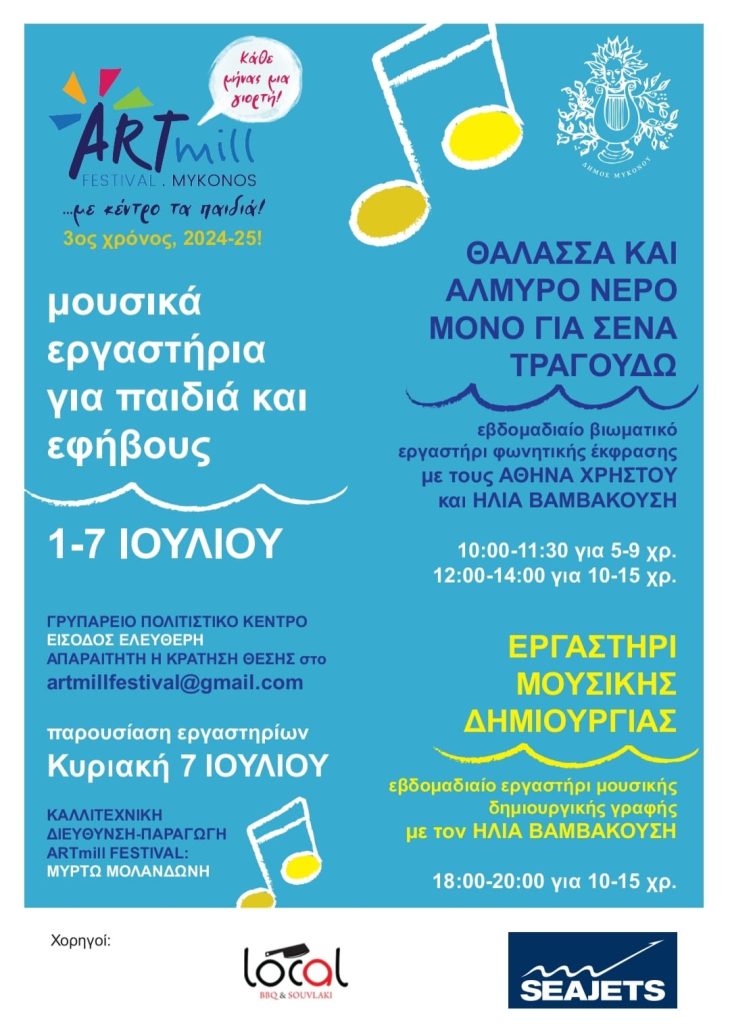Το πρόγραμμα για το Mykonos ArtMill Festival το οποίο θα διαρκέσεις 6 μήνες, από τον Ιούλιο έως και τον Δεκέμβριου του 2024.