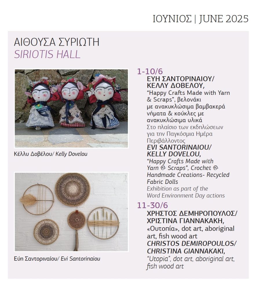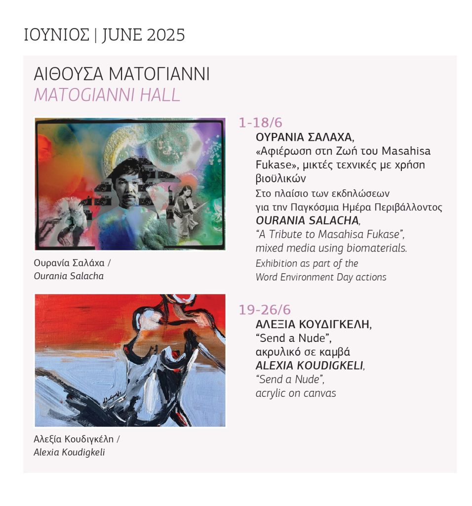 Οι τρεις εκθεσιακοί χώροι μας – Ματογιάννι, Καλογερά και Συριώτη – φιλοξενούν μοναδικές εκθέσεις που αξίζει να επισκεφθείτε.