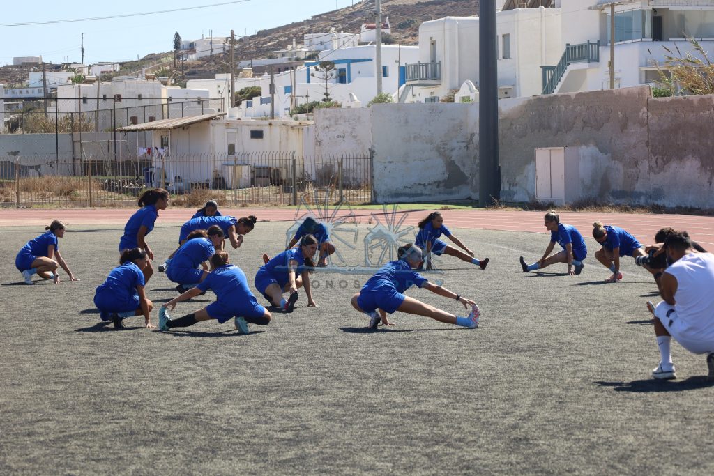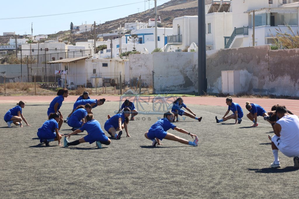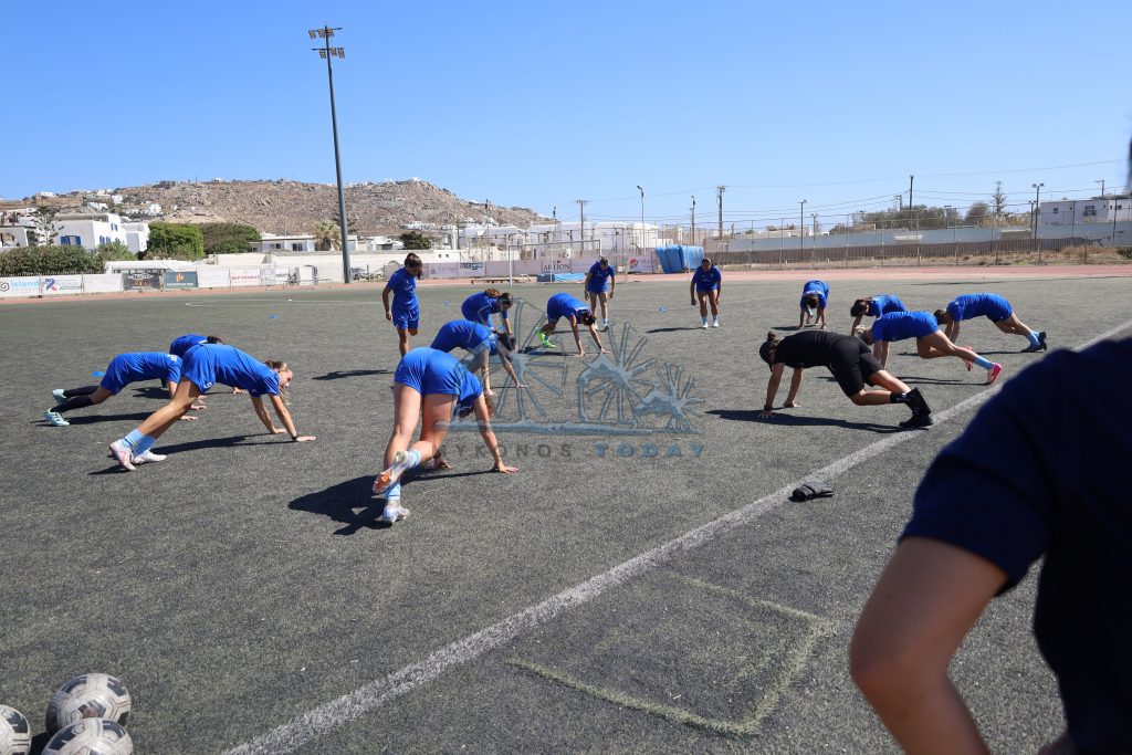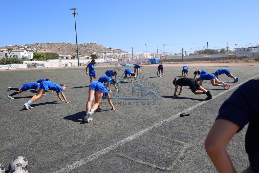 Οι αθλήτριες της ομάδας εμφανίστηκαν στο γήπεδο με πολύ καλή διάθεση και με όρεξη για δουλειά και φετινός στόχος είναι η ομάδα του Μυκονιάτικου Σωματείου να εμφανιστεί ακόμα καλύτερη.