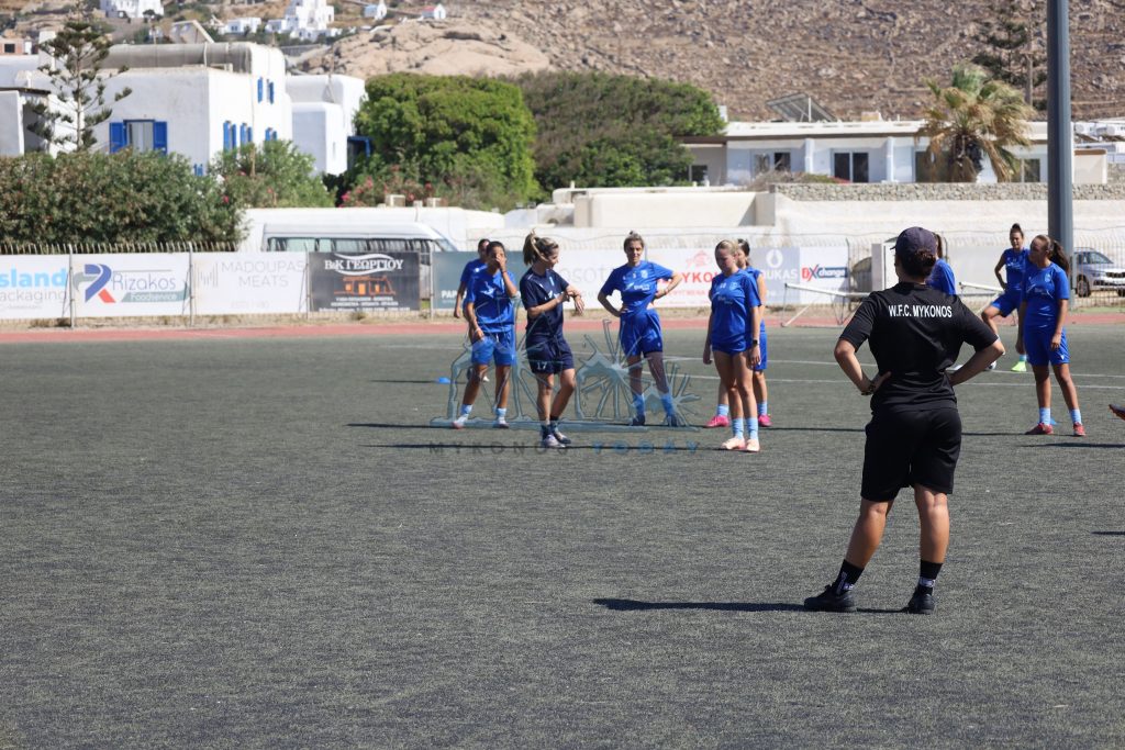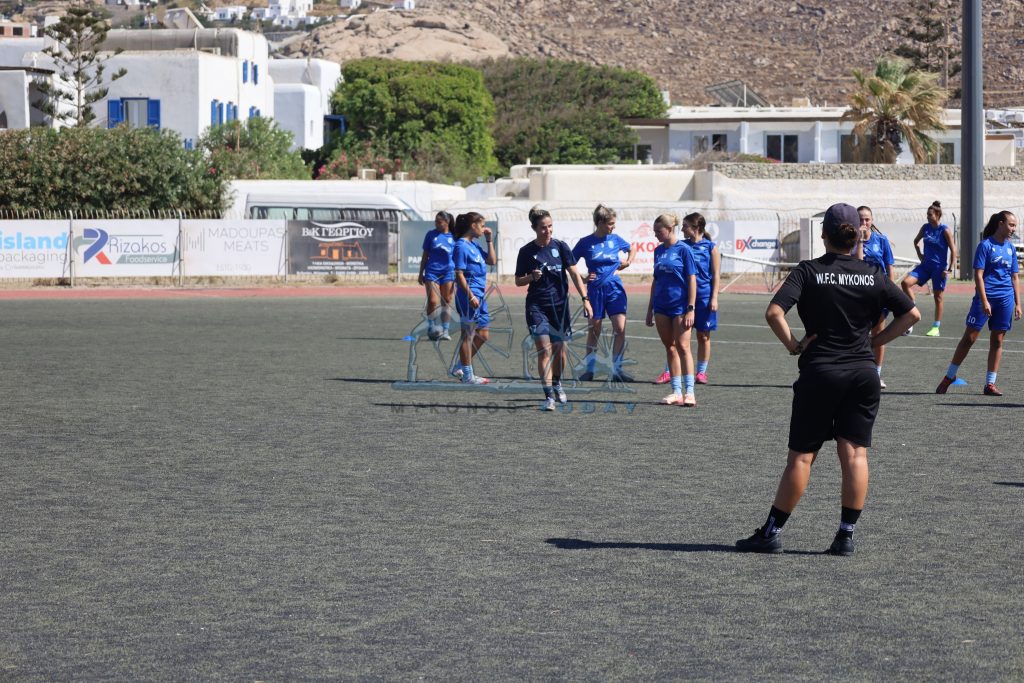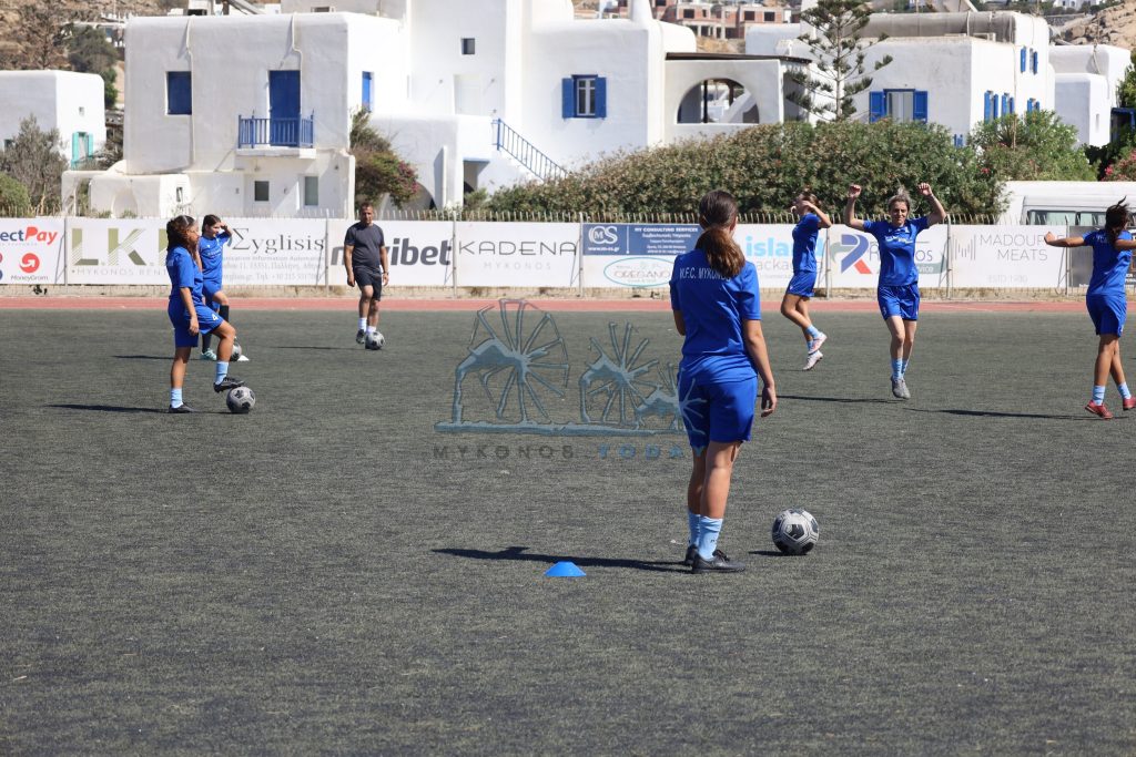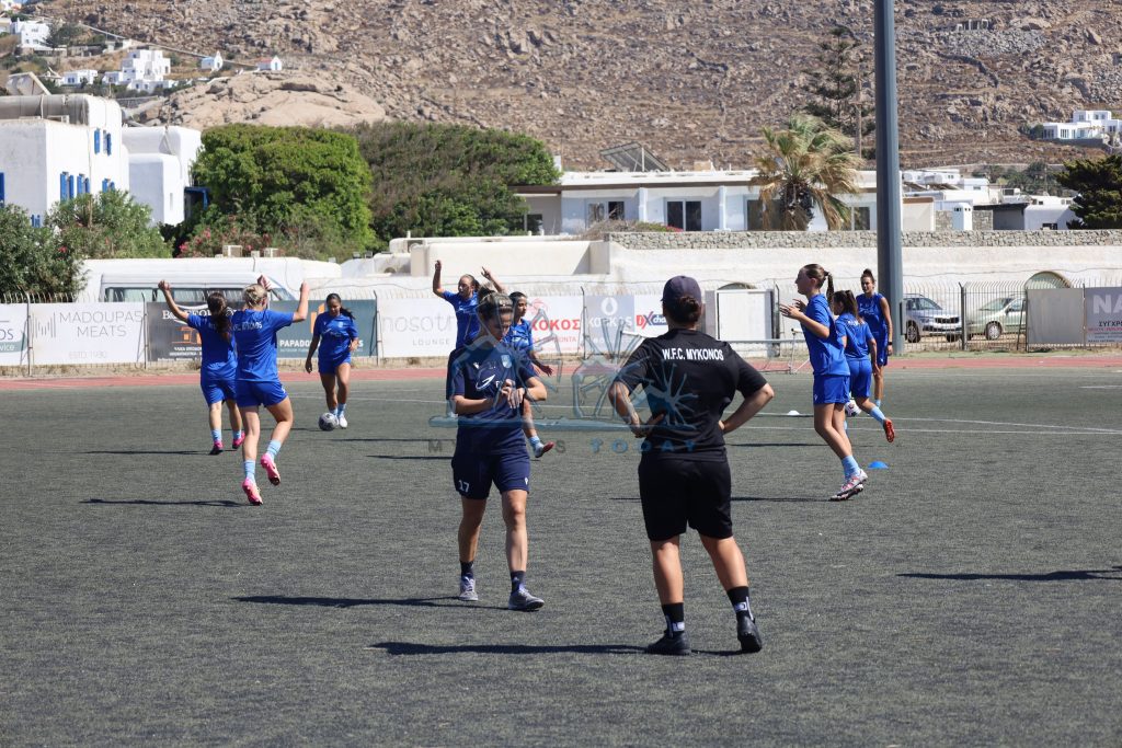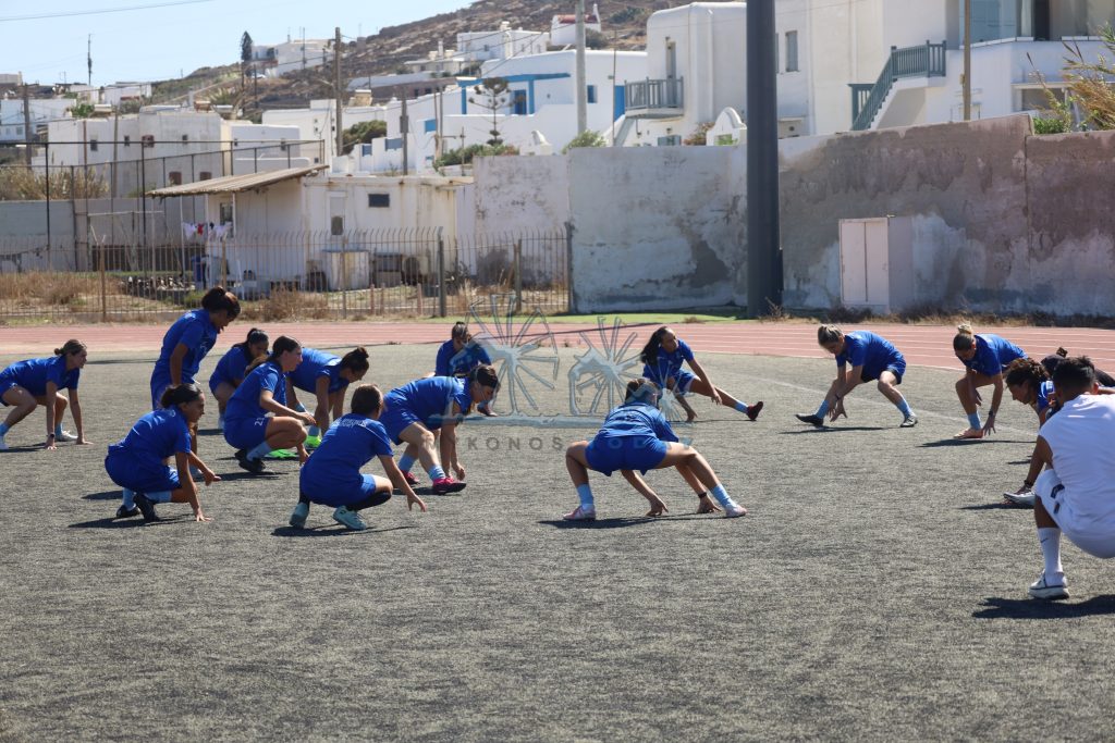 Οι αθλήτριες της ομάδας εμφανίστηκαν στο γήπεδο με πολύ καλή διάθεση και με όρεξη για δουλειά και φετινός στόχος είναι η ομάδα του Μυκονιάτικου Σωματείου να εμφανιστεί ακόμα καλύτερη.